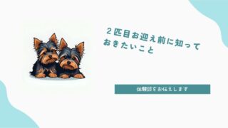 多頭飼い 2匹目の犬を迎えて後悔しないために知っておくこと 先住犬まる(ヨークシャテリア・オス)が7歳の時に2匹目の犬てん(ヨークシャテリア・メス)4ヶ月が我が家に来ました。ペットショップにたまたま行って、その日のうちにお迎えを決めました。その時の感情的な理由でてんを迎えることになりました。当然全く... 2025.10.20 多頭飼い